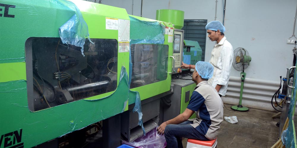 Each one of the products is made meticulously at our manufacturing unit in Silvassa, Dadra & Nagar Haveli ~ Just 120 Km away from Mumbai. Our state of the Art manufacturing unit comes with facilities for designing to Mould making to the Final Trial. Our Wide Array of Machines Include: